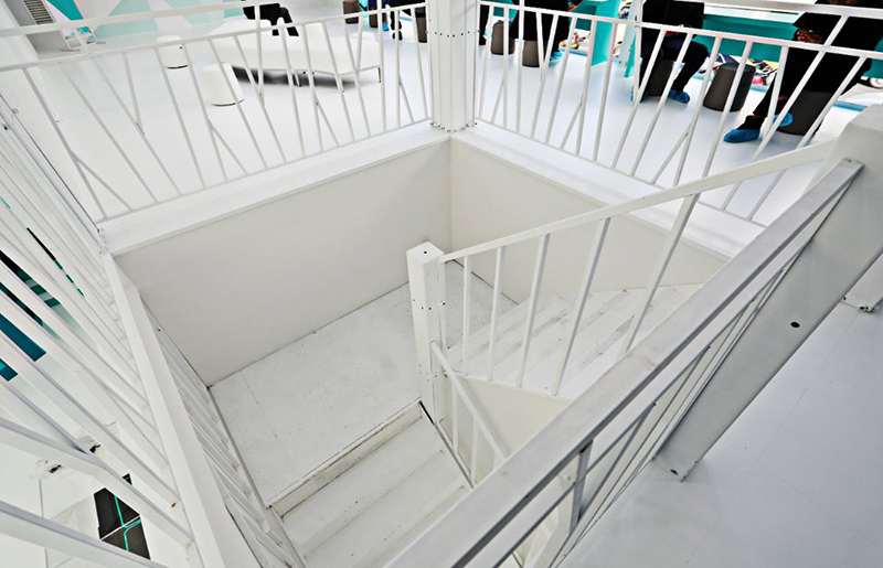 從右邊的螺旋樓梯上樓便是直播站的二層,這樣的樓梯設計更能節(jié)省空間的使用。