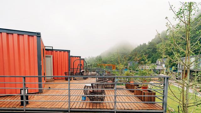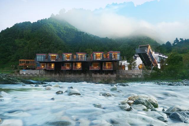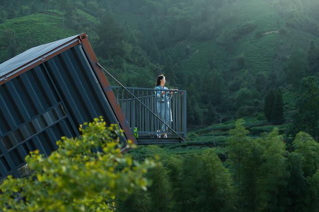 廂居位于素有"皖南金項鏈"之稱的宏儒公路旁,8000平方米的土地上只坐落了26間套,背靠茶山,前臨溪流,將46個集裝箱“勾搭”建于山水之間,久在樊籠里,復(fù)得返自然的田園之感油然而生。