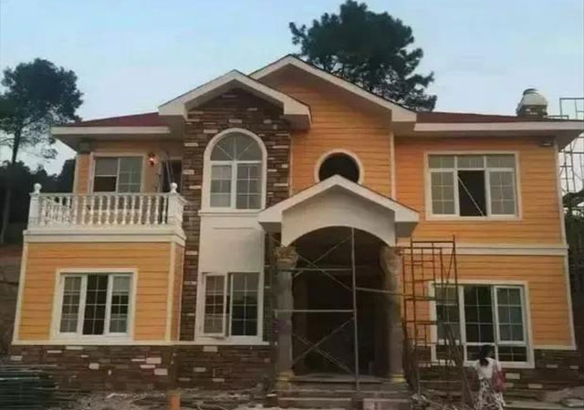 今天咱們來(lái)看下現(xiàn)場(chǎng),到底它是怎么建起來(lái)的。這棟別墅相信大家都不陌生了,見(jiàn)過(guò)的實(shí)景別墅也不下十幾棟,但是這棟輕鋼構(gòu)造,僅用25天就建成,在當(dāng)?shù)剡€引起了一陣轟動(dòng)。