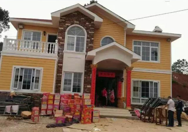 墻體和屋頂基本完工,外墻裝飾選擇的是文化石,內(nèi)部的裝修也沒(méi)落下,內(nèi)外同步進(jìn)行。