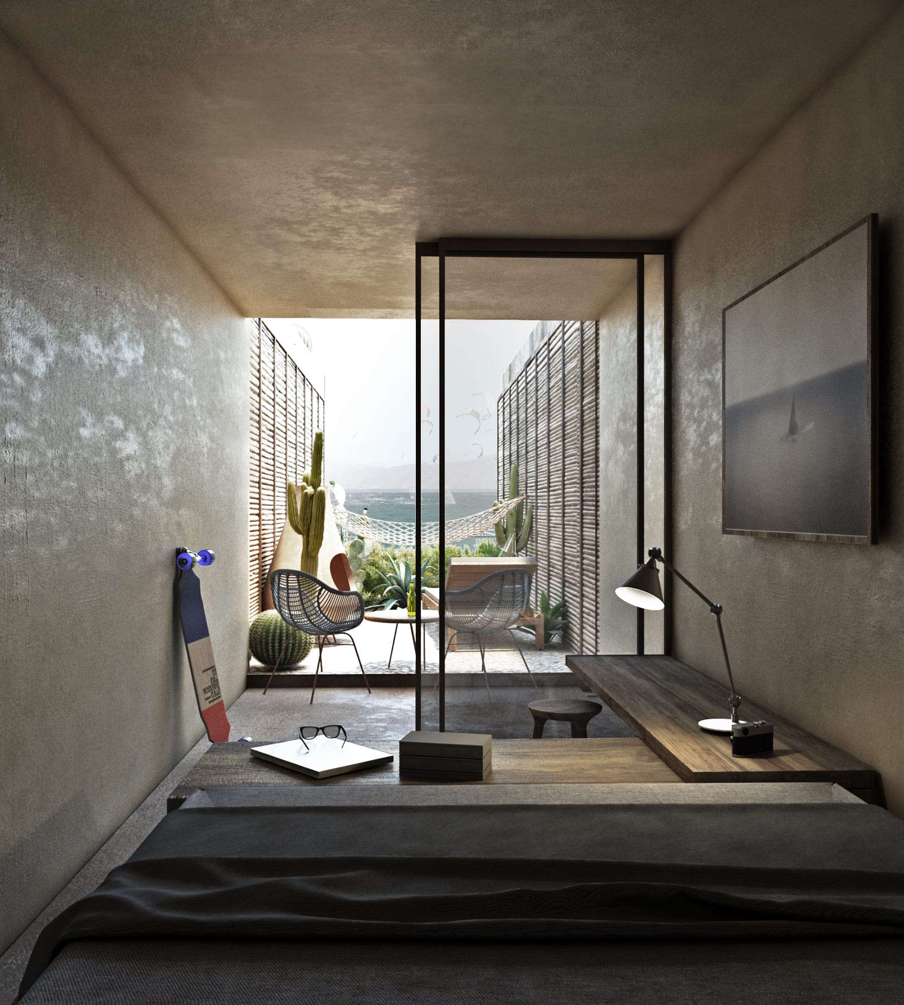 那么出于自身利益的考慮,以及為了能夠減少人類對地球造成的負(fù)面影響,我們決定對這些集裝箱進(jìn)行改造,使其與環(huán)境相融合,充分適應(yīng)場地上的極端溫度條件。具體的操作手法則參照了下加利福尼亞州的傳統(tǒng)建造技藝。