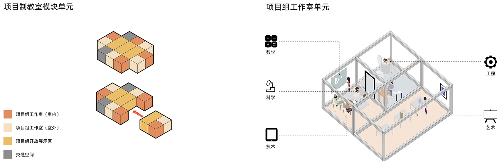 ▼模塊化的空間設(shè)計可成為未來學(xué)校可復(fù)制的基本空間單元