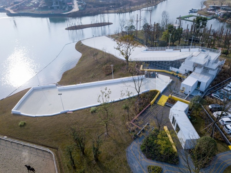 麓客島滑嚕嚕Holulu旱雪場,位于成都“麓湖水城景區”2400余畝湖域中央的“麓客島”,島上項目力求通過定制化的設計,創造不一樣的體驗空間。這些具有一定實驗性的場地、景觀及建筑,成為了麓客島上特殊的風景。受業主方的委托,在朝向湖面的自然坡地上布置分別滿足20米寬的初級旱雪道及30米寬的中級旱雪道,以滿足滑雪愛好者的練習需求。