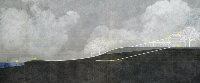一級休息平臺結合集裝箱建筑作為入場前的準備,二級平臺及建筑則是包含初級道出發平臺、通向中級道出發平臺的通道、休息等待、家長及陪同休息廳、物品儲備等等一系列綜合功能。